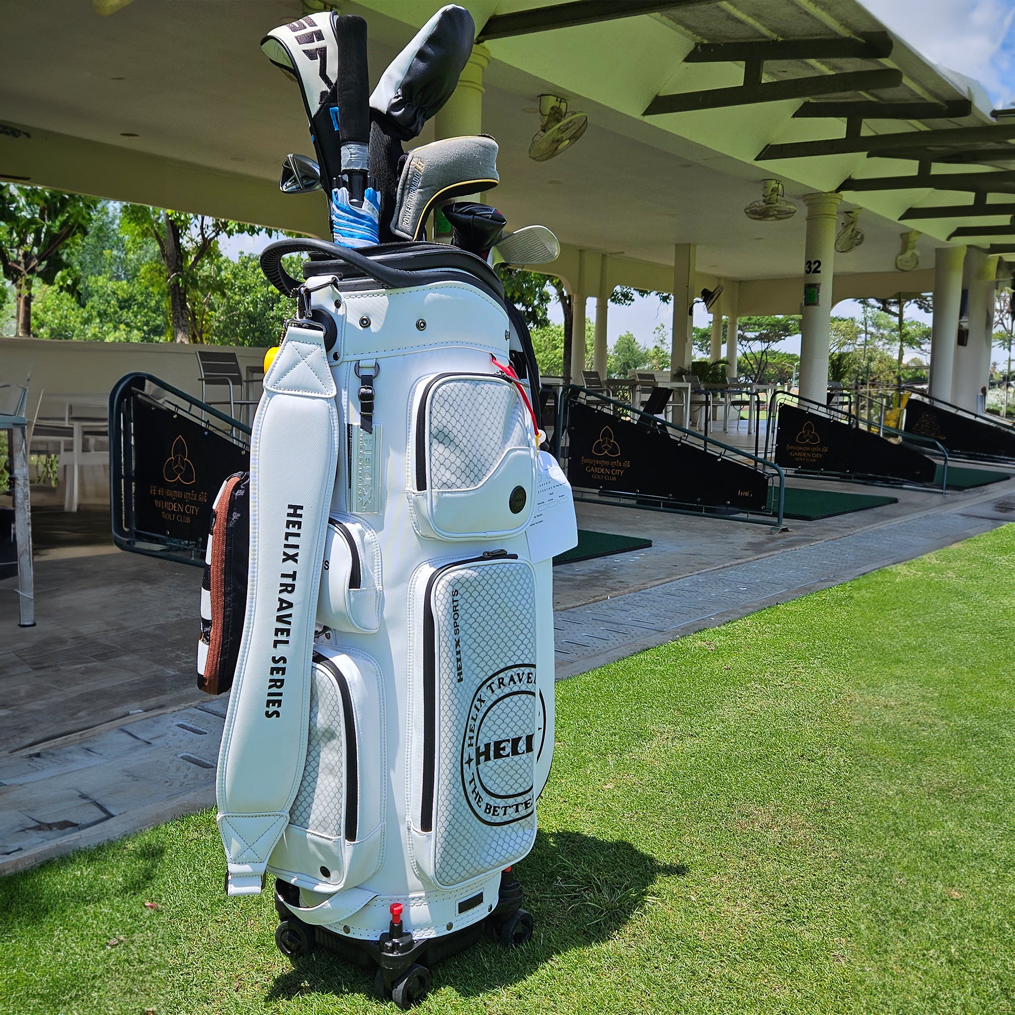 Excellent travel bag for golf clubs. The 4 wheels, several covers and a travel sleeve to boot! It's perfect with 2 different pull handles.