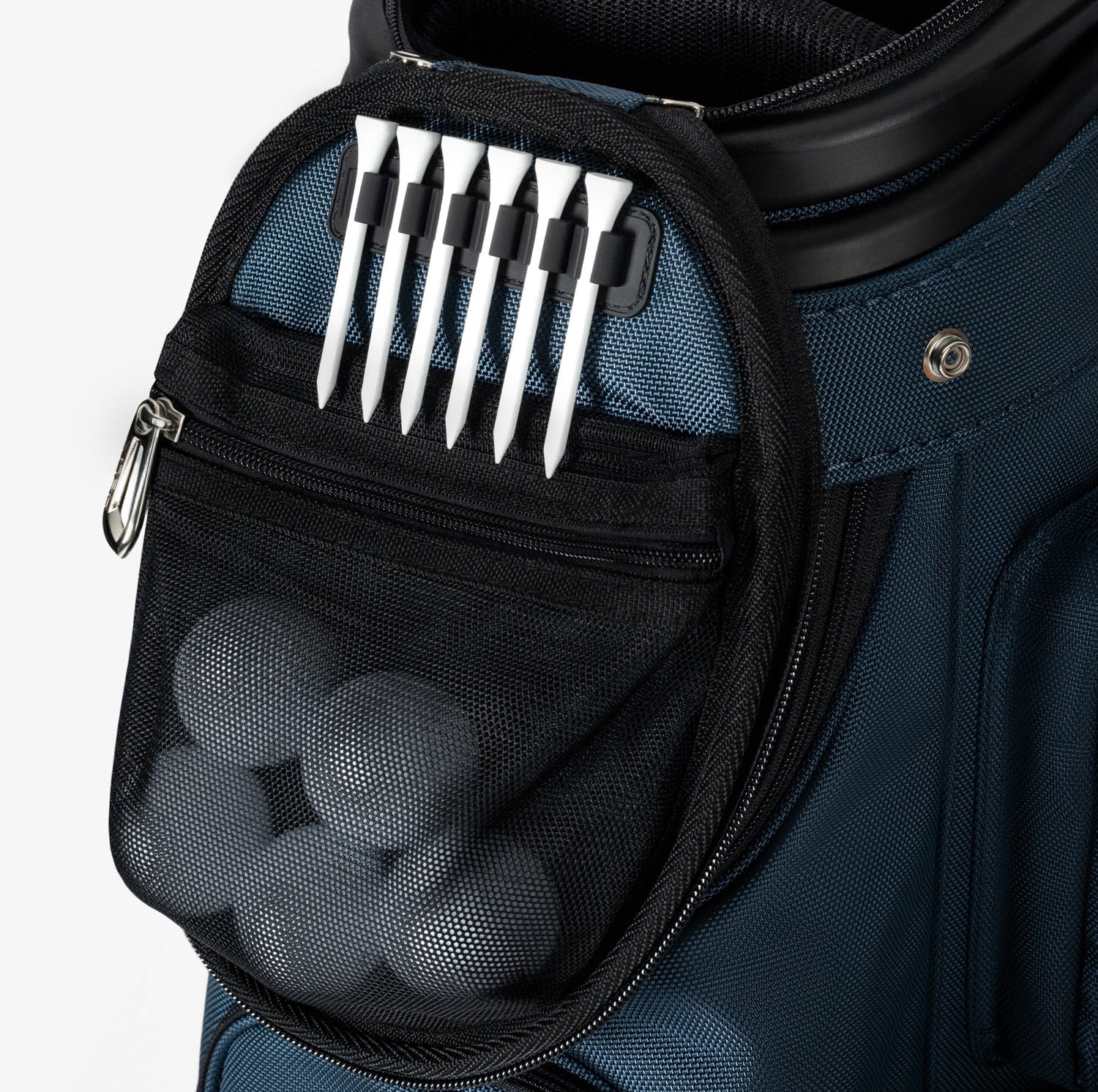 Features an additional storage compartment on top for convenient storage of various small accessories like golf tees, ball markers, or golf balls.