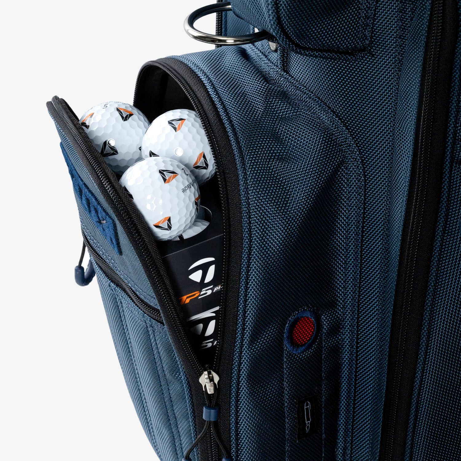 This golf bag features strong, sturdy, high-quality 1680D nylon fabric, offering protection while maintaining flexibility.