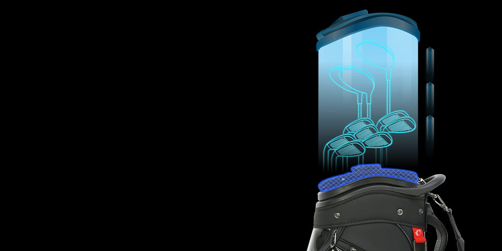 6 way full-length golf club organizer enables easy classification of clubs and protects clubs from damage.